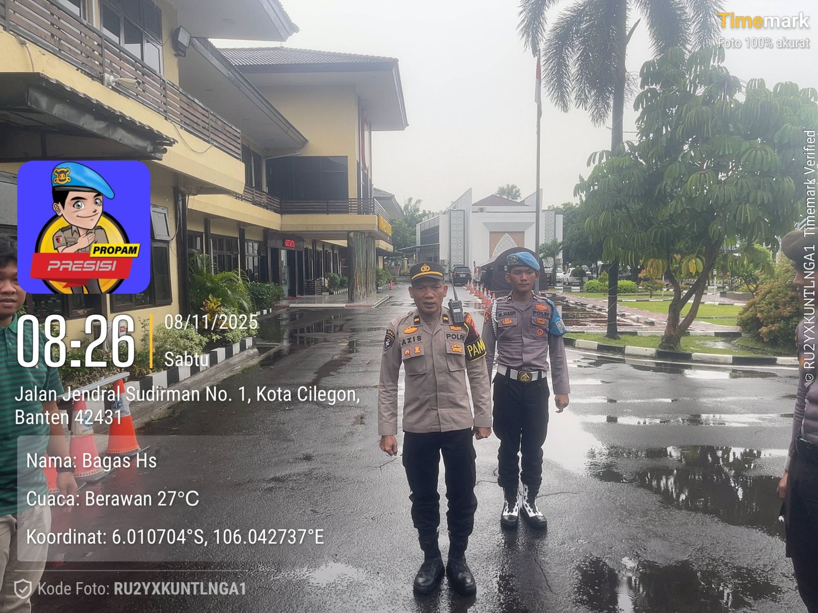 Cilegon, personel Satreskrim Polres Cilegon Polda Banten melaksanakan piket di penjagaan pintu masuk Polres Cilegon Polda Banten untuk memastikan mako Polres Cilegon dalam keadaan aman dan nyaman dalam melayani Masyarakat tanpa adanya gangguan kejahatan. Sabtu (08/11/2025).