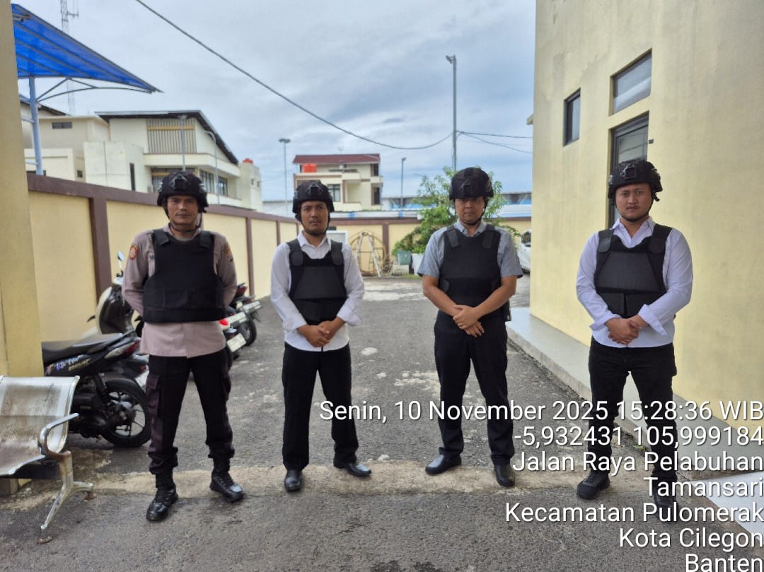 Cilegon - Personel piket jaga Polsek Kskp Merak Polres Cilgon Polda Banten melaksanakan siaga 1 Polsek pelaksanaan Sispam Mako oleh piket siaga dipimpin oleh Kspk Polsek Kskpy Merak Polres Cilegon Polda Banten, Senin (10/11/2025).