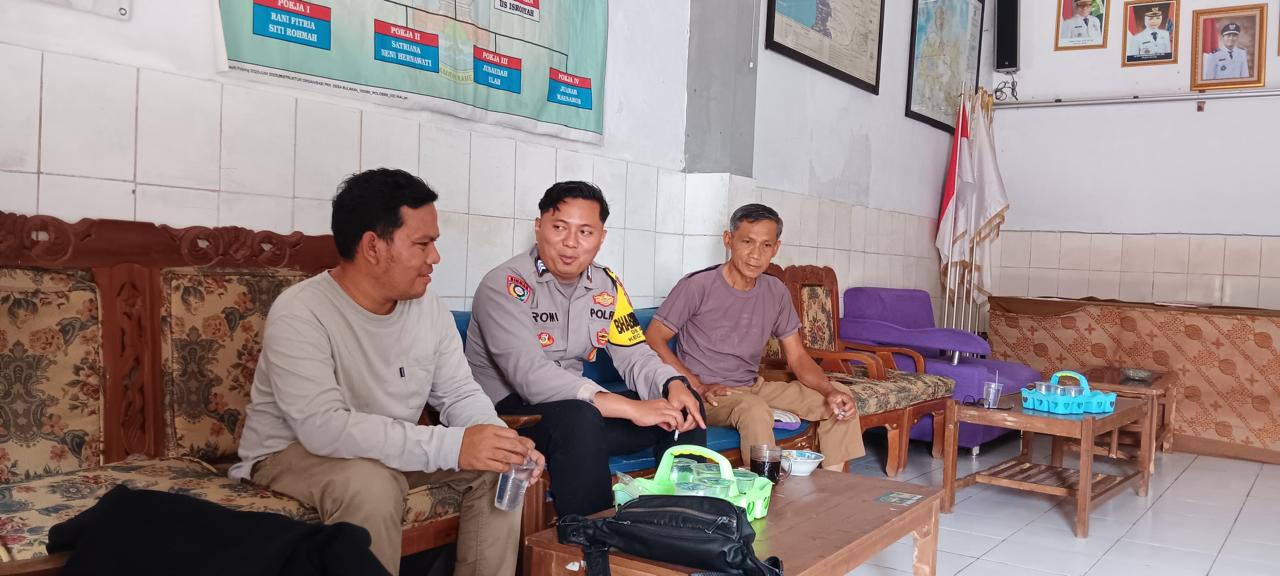 *CILEGON* dalam Rangka Mengantisipasi Gktm di wilayah Personil Bhabinkamtibmas Cinangka melakukan patroli Dialogis dengan Kepala Desa dan warga dan Menanyakan situasi Kamtibmas di wilayah dalam Rangka Menjaga Harkamtibmas di Desa Binaannya Kecamatan Cinangka Kab. Serang. Selasa (11/11/2025).
