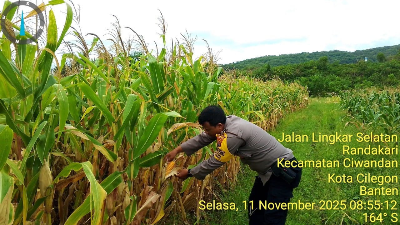 Cilegon - Dalam rangka mendukung ketahanan pangan dan meningkatkan produktivitas pertanian,Bhabinkamtibmas Polsek Ciwandan Polres Cilegon Polda Banten Monitoring Lahan Pertanian Jagung Milik Kelompok Tani Binaan, Selasa (11/11/2025).