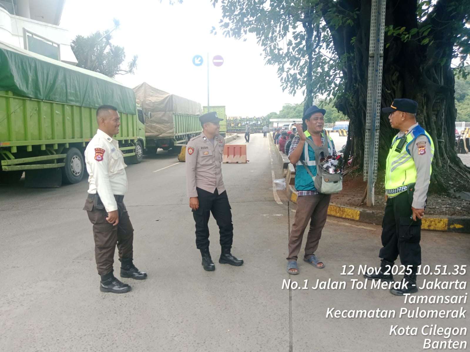Cilegon - Personel Polsek Kskp Merak Polres Cilegon Polda Banten melaksanakan sambang dan patroli kawasan pelabuhan merak dalam rangka menjaga Harkamtibmas di Kawasan Pelabuhan Merak, Rabu (12/11/2025).