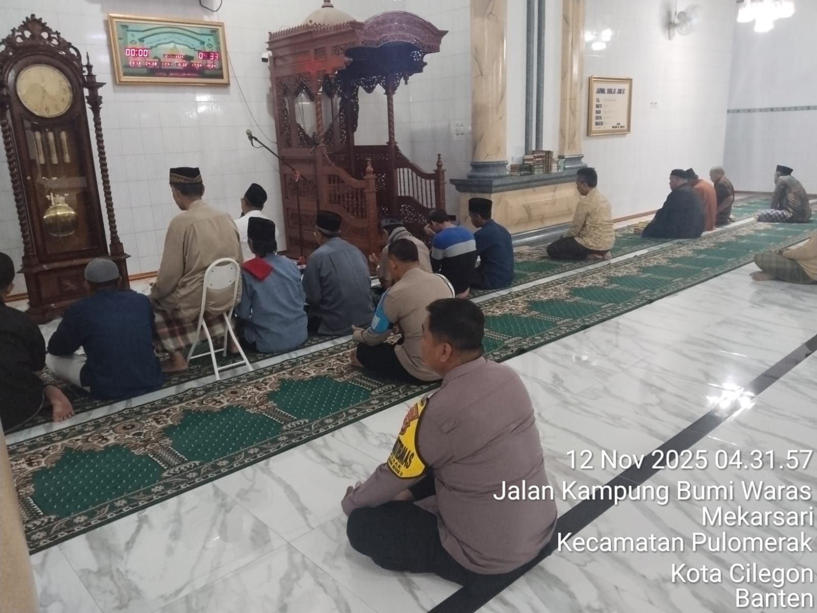 “Dalam kegiatan tersebut, Personil Polsek Kp Polres Cilegon Polda Banten turut berbaur dengan jemaah masjid dalam melaksanakan shalat subuh berjamaah. Setelah itu, dilakukan dialog interaktif antara petugas kepolisian dan masyarakat untuk mendengarkan aspirasi serta memperoleh masukan terkait dengan situasi keamanan dan ketertiban di lingkungan sekitar,” tambah Kapolsek.