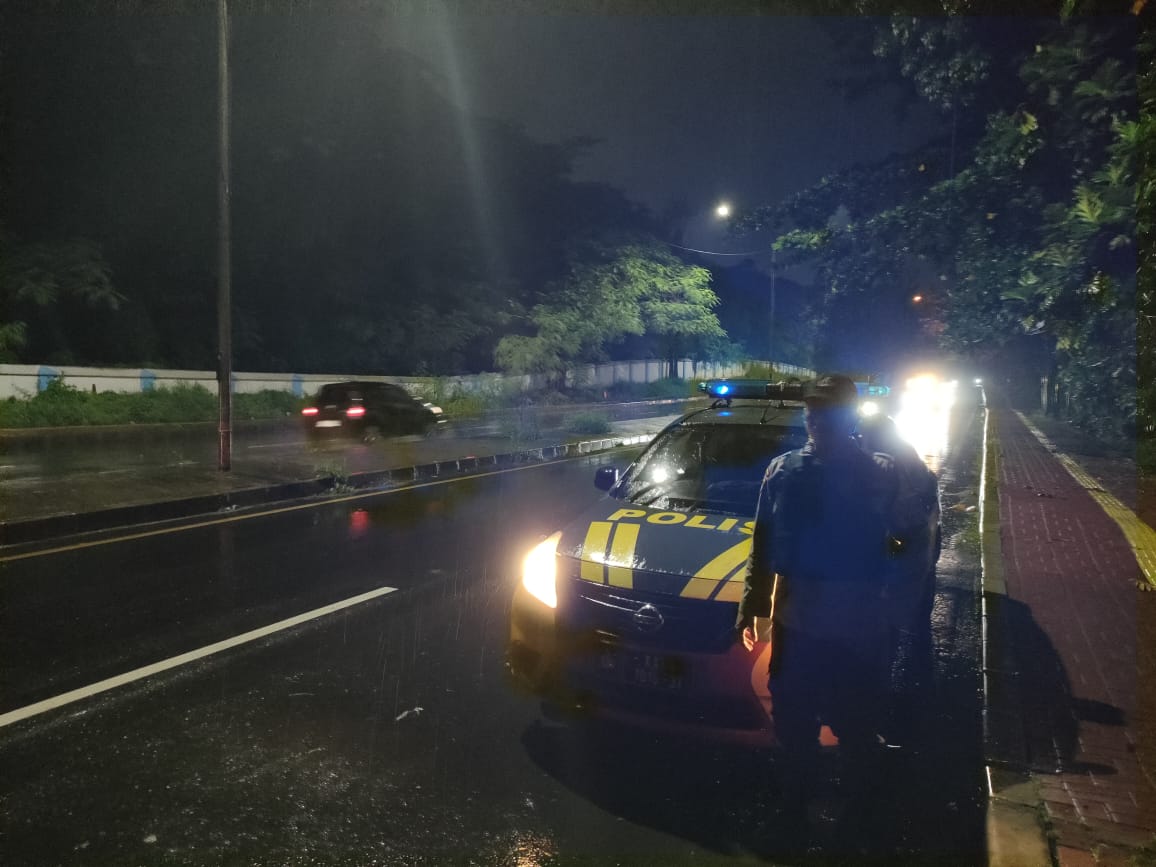 -POLRES CILEGON– Personil Polsek Purwakarta Polres Cilegon meningkatkan patroli blue light pada malam hari sebagai langkah antisipasi terhadap potensi pohon tumbang akibat hujan deras yang mengguyur wilayah Purwakarta, Kota Cilegon, Kamis.(13/11/2025).