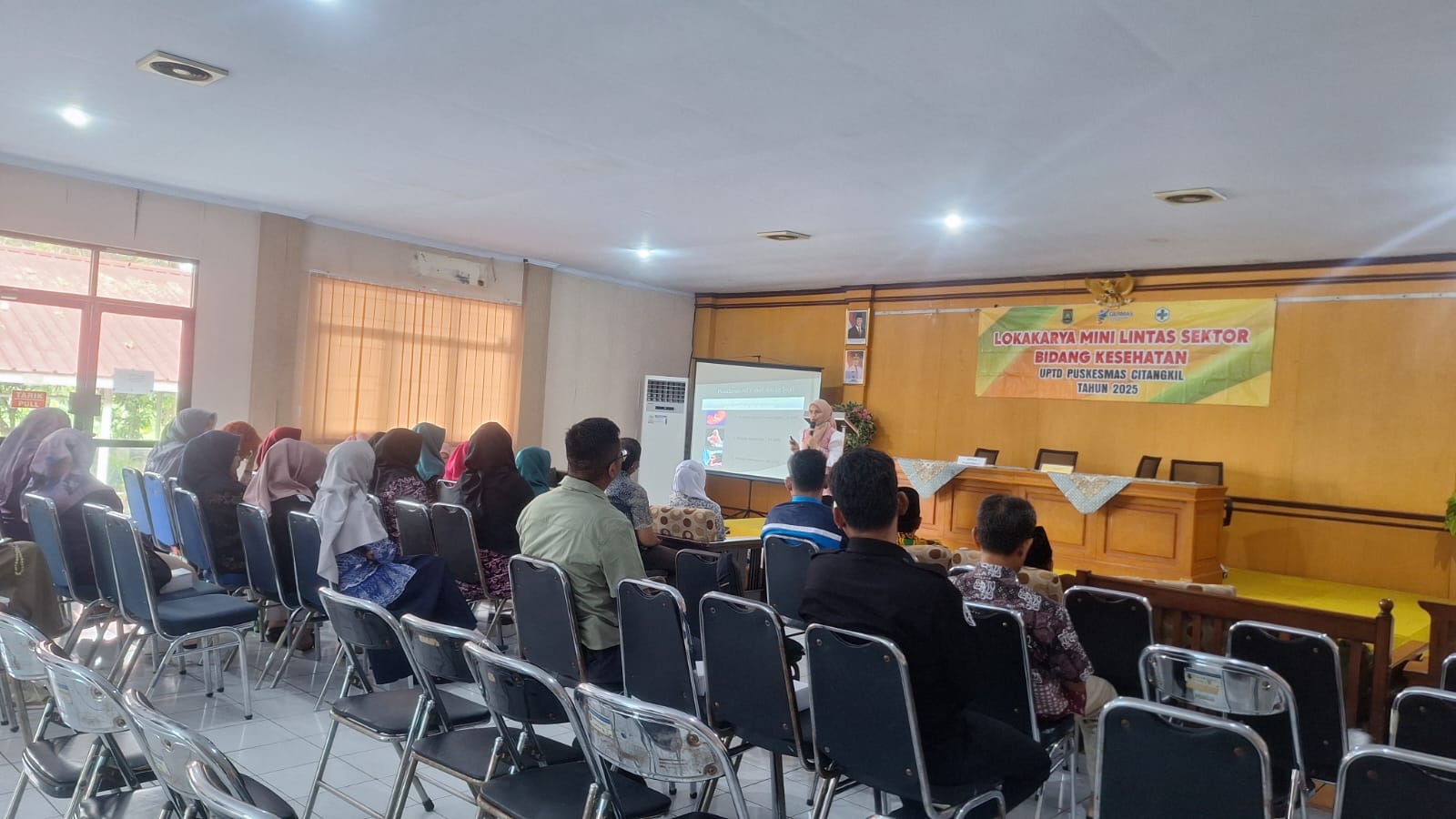 Cilegon - Ps. Kasie Humas Polsek Ciwandan Polres Cilegon Polda Banten BRIPKA Herawan Sepridho Bersama Personil Bhabinkamtibmas Polsek Ciwandan BRIPKA Marisco menghadiri kegiatan Lokakarya mini Lintas Sektor Bidang Kesehatan UPTD Puskesmas Citangkil I Tahun 2025 Di Aula Kantor Kecamatan Citangkil, Kamis (13/11/2025).