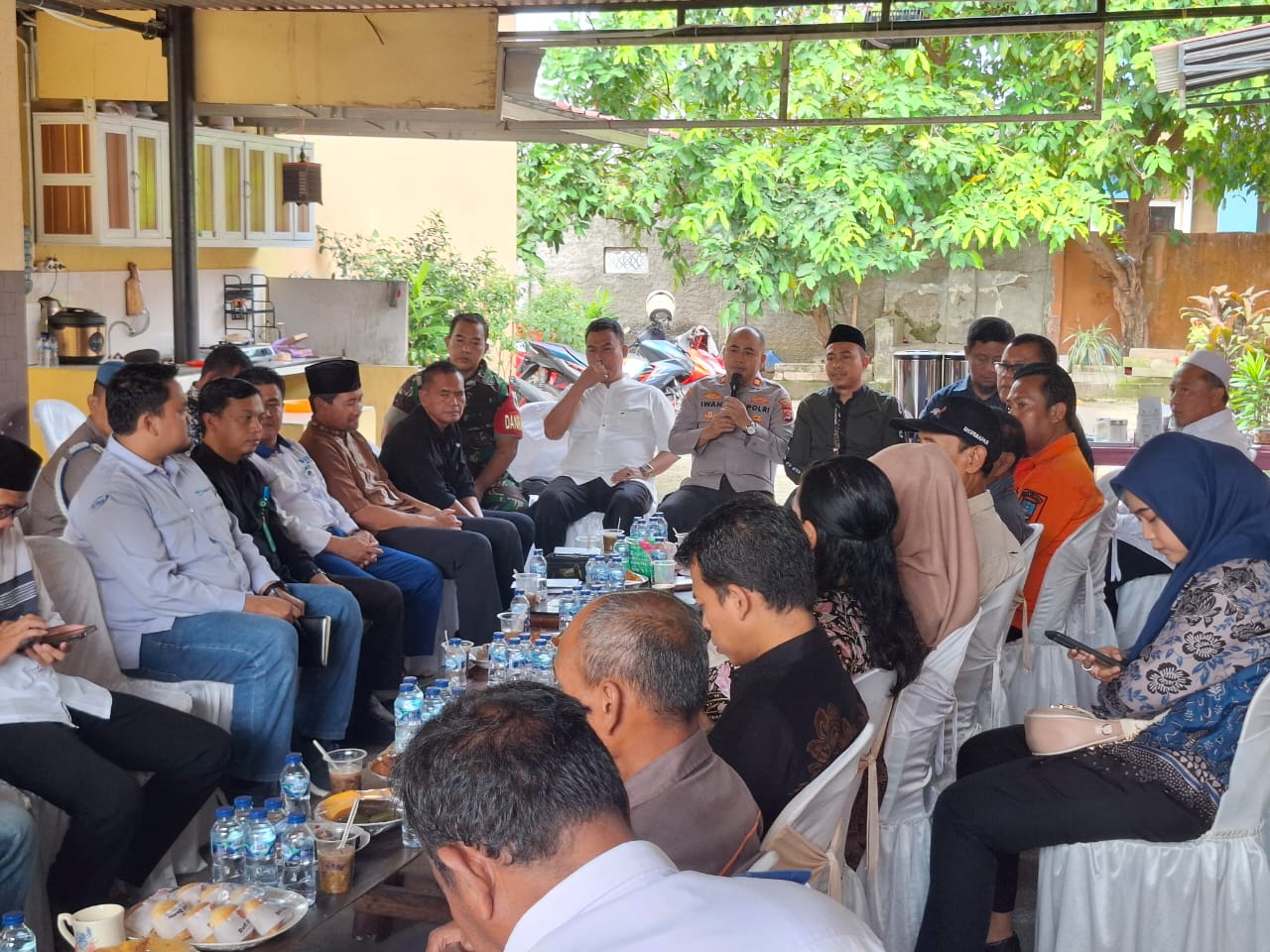 Kapolres Cilegon Polda Banten AKBP AKBP Dr. Martua Raja Taripar Laut Silitonga Melalui Kapolsek Anyar Polres Cilegon Polda Banten IPTU Iwan Sofiyan Mengatakan Bertempat di Mako Polsek Anyar Polres Cilegon Polda Banten Melaksanakan Giat Coffe Morning Bersama Unsur Forkopicam, Dinas Pariwisata dan PHRI dan Media dalam menghadapi kesiapan Nataru 2025 dan Siaga Bencana.