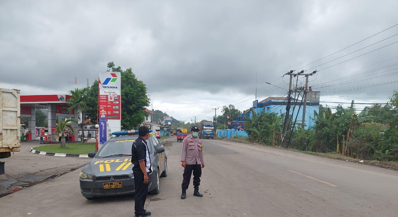 Demi Kelancaran Lalin, Anggota Polsek Bojonegara Laksanakan atur Lalin di Depan SPBU Bojonegara