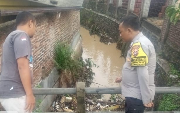 Bhabinkamtibmas Pantau Sungai Pasca Hujan Deras, Imbau Warga Waspada Longsor