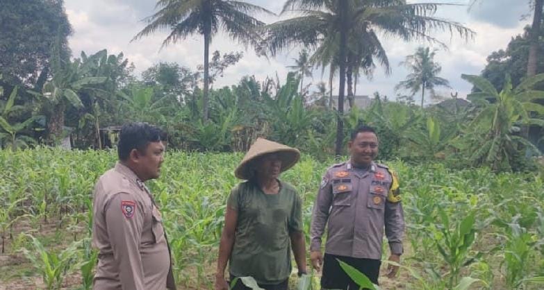 Pada kesempatan tersebut personil bhabinkamtibmas polsek Cibeber Polres Cilegon Polda Banten meninjau langsung lahan pertanian Jagung milik warga Binaan Lingkungan kelurahan Karang Asem Kec. Cibeber.