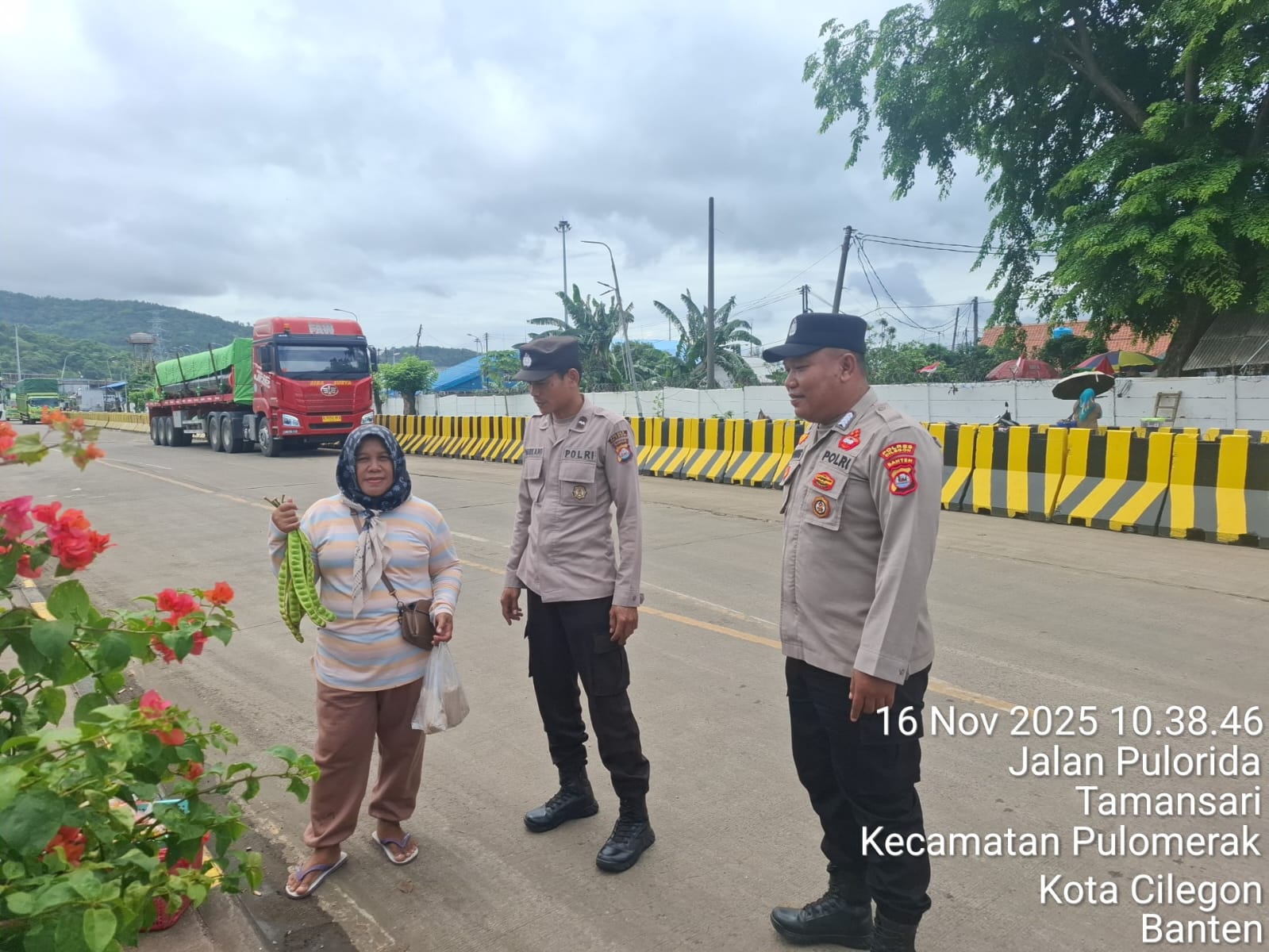 Cilegon - Personel Polsek Kskp Merak Polres Cilegon Polda Banten melaksanakan sambang dan patroli kawasan pelabuhan merak dalam rangka menjaga Harkamtibmas di Kawasan Pelabuhan Merak, Minggu (16/11/2025).