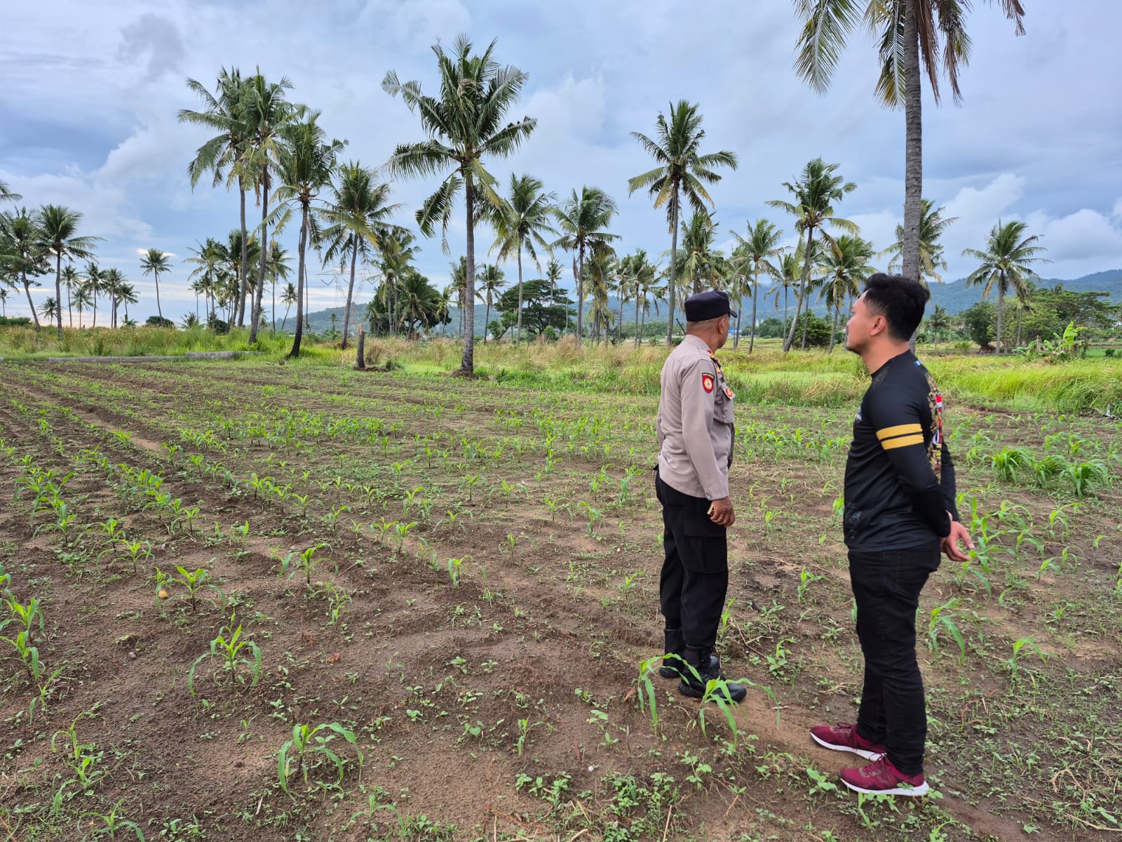 Melalui personil polri berperan aktif dalam mendukung upaya masyarakat meningkatkan ketahanan pangan. Kami hadir untuk memberikan rasa aman, sekaligus ikut memantau langsung kondisi pertanian di desa,” ujar Kapolsek