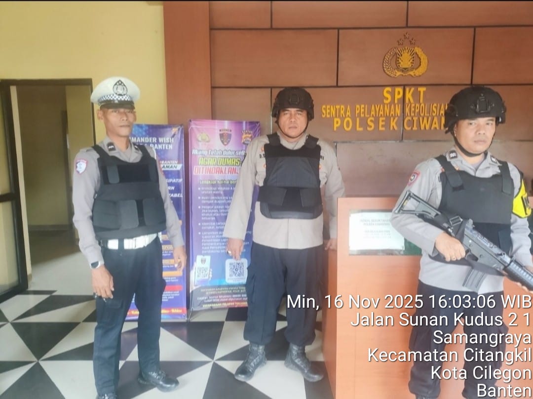 Cilegon - Guna mengantisipasi adanya potensi ancaman dan gangguan terhadap keamanan kantor maupun keselamatan personel piket jaga, Personil Polsek Ciwandan Polres Cilegon Polda Banten selalu tingkatkan kesiapsiagaan dan kewaspadaan dengan rutin menggelar kegiatan Sistem Pengamanan Mako (Sispam Mako), Minggu (16/11/2025).