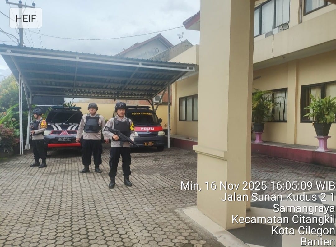 Cilegon - Guna mengantisipasi adanya potensi ancaman dan gangguan terhadap keamanan kantor maupun keselamatan personel piket jaga, Personil Polsek Ciwandan Polres Cilegon Polda Banten selalu tingkatkan kesiapsiagaan dan kewaspadaan dengan rutin menggelar kegiatan Sistem Pengamanan Mako (Sispam Mako), Minggu (16/11/2025).