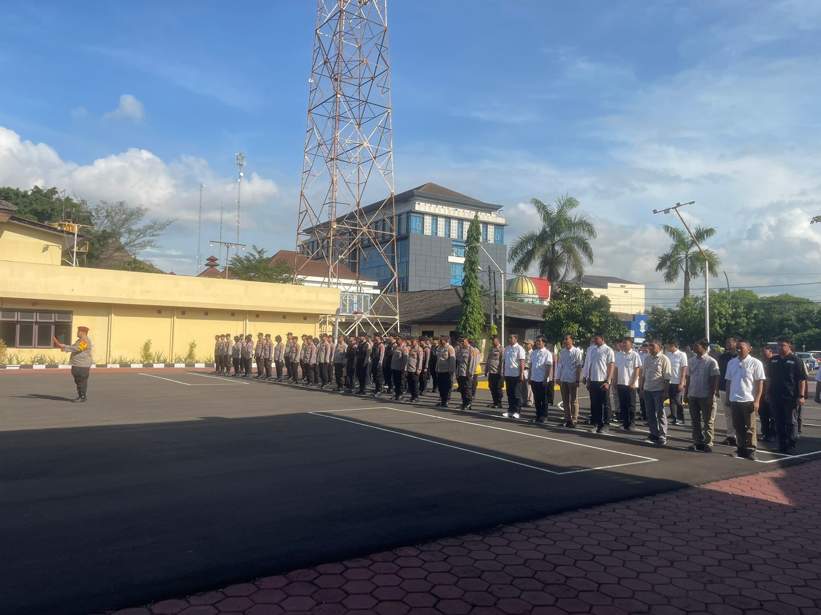 Cilegon,Polres Cilegon Polda Banten Pada Jum’at/04/04/2025 Pukul 07.00 Wib, Personil  Polres Cilegon melaksanakan apel pagi dilapangan apel Polres Cilegon.