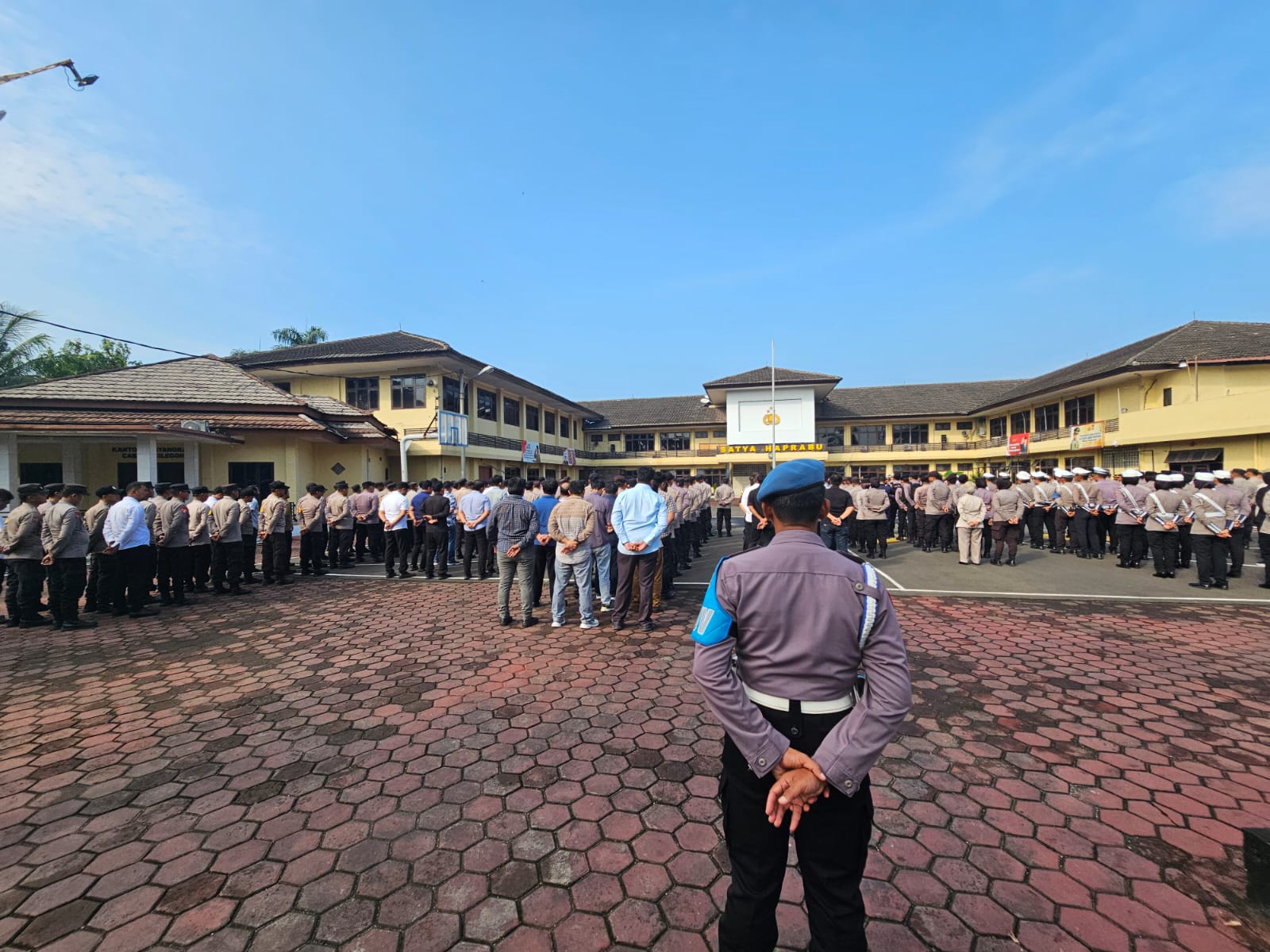 Personil Sipropam Polres Cilegon melakukan Pengecekan absensi kehadiran pada saat pelaksanaan apel pagi, Selasa (18/11//2025) bertempat di Lapangan  Apel Polres Cilegon.