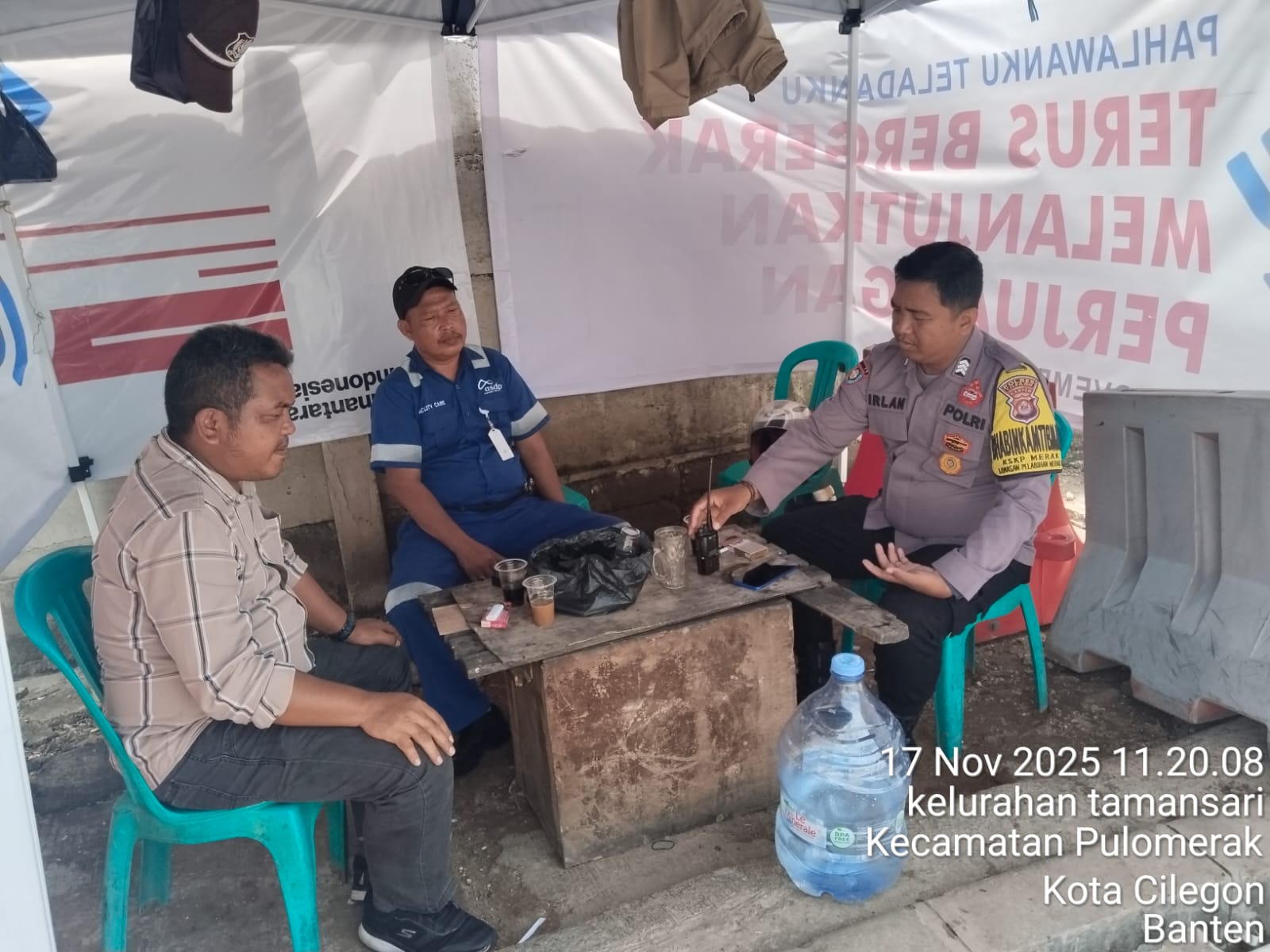 Kapolres Cilegon Polda Banten AKBP Martua Raja Taripar Laut Silitonga melalui Kapolsek Kskp Merak Polres Cilegon Polda Banten AKP Gusti Almasri P menerangkan bahwa personil Bhabinkamtibmas dalam pelaksanaan sambang dialogis dilaksanakan secara terus menerus dengan stak holder yang berada di kawasan pelabuhan merak dalam hal menjaga Harkamtibmas .
