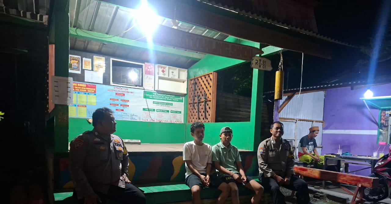 Cilegon ~ Dalam upaya menjaga situasi kamtibmas tetap kondusif,Bhabinkamtibmas Polsek Bojonegara Polres Cilegon Polda Banten,  Bhabinkamtibmas Desa Margagiri melaksanakan kegiatan kontrol dan pemantauan ronda malam,di sejumlah pos ronda warga yang berada di wilayah binaannya, Selasa (18/11/2025).