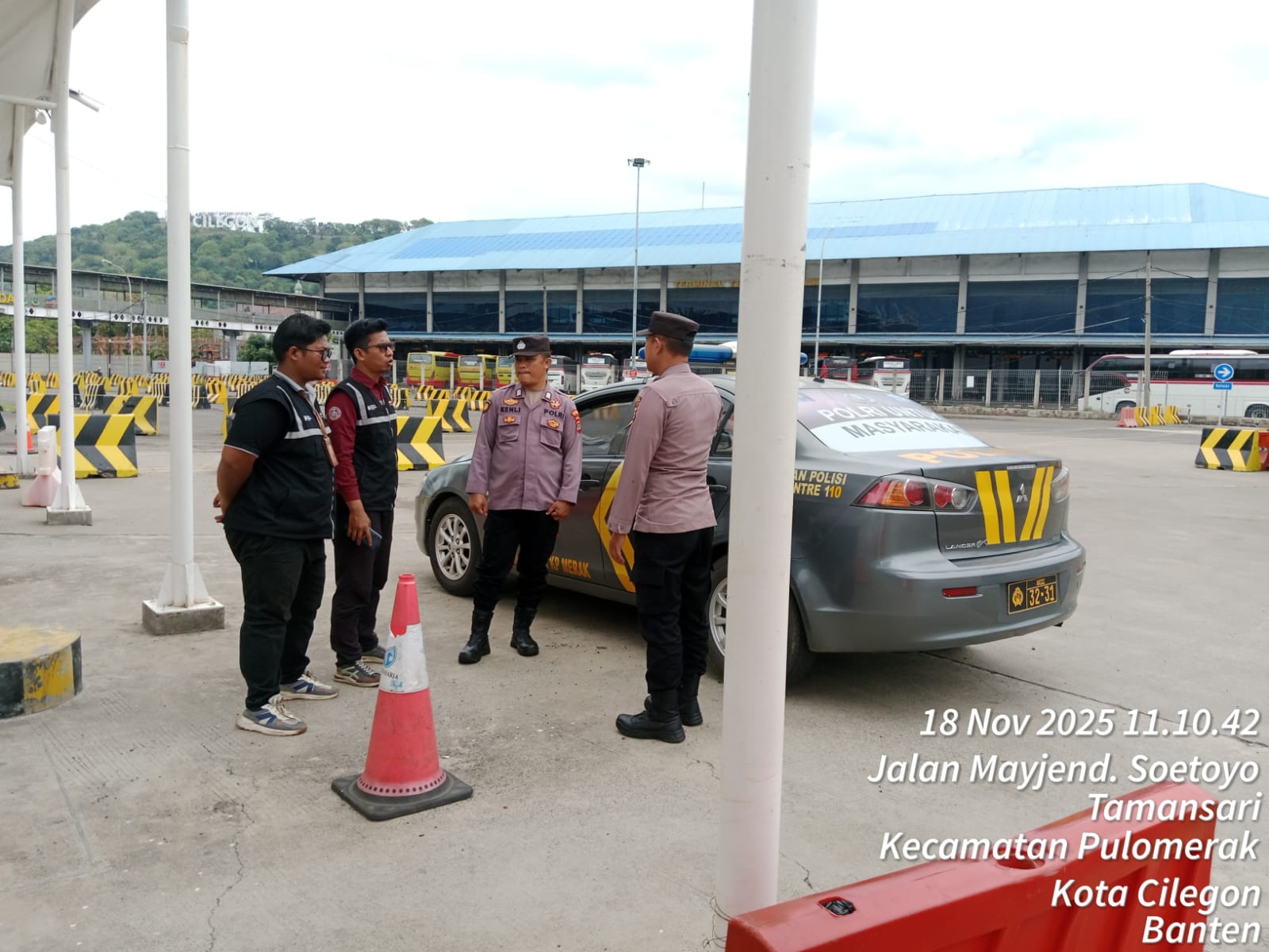 Cilegon - Personel Polsek Kskp Merak Polres Cilegon Polda Banten melaksanakan sambang dan patroli kawasan pelabuhan merak dalam rangka menjaga Harkamtibmas di Kawasan Pelabuhan Merak, Selasa (18/11/2025).
