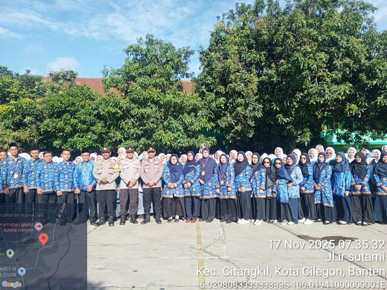 Cilegon – Bhabinkamtibmas Polsek Ciwandan Dampingi Kabag SDM Polres Cilegon Polda Banten KOMPOL Entang Cahyadi Pimpin Upacara Dan Menyambangi MAN 1 Kota Cilegon Dikelurahan Lebak Denok Kecamatan Citangkil, Menyampaikan Pesan-pesan Kamtibmas Dan Memberikan Imbauan, Selasa (18/11/2025).