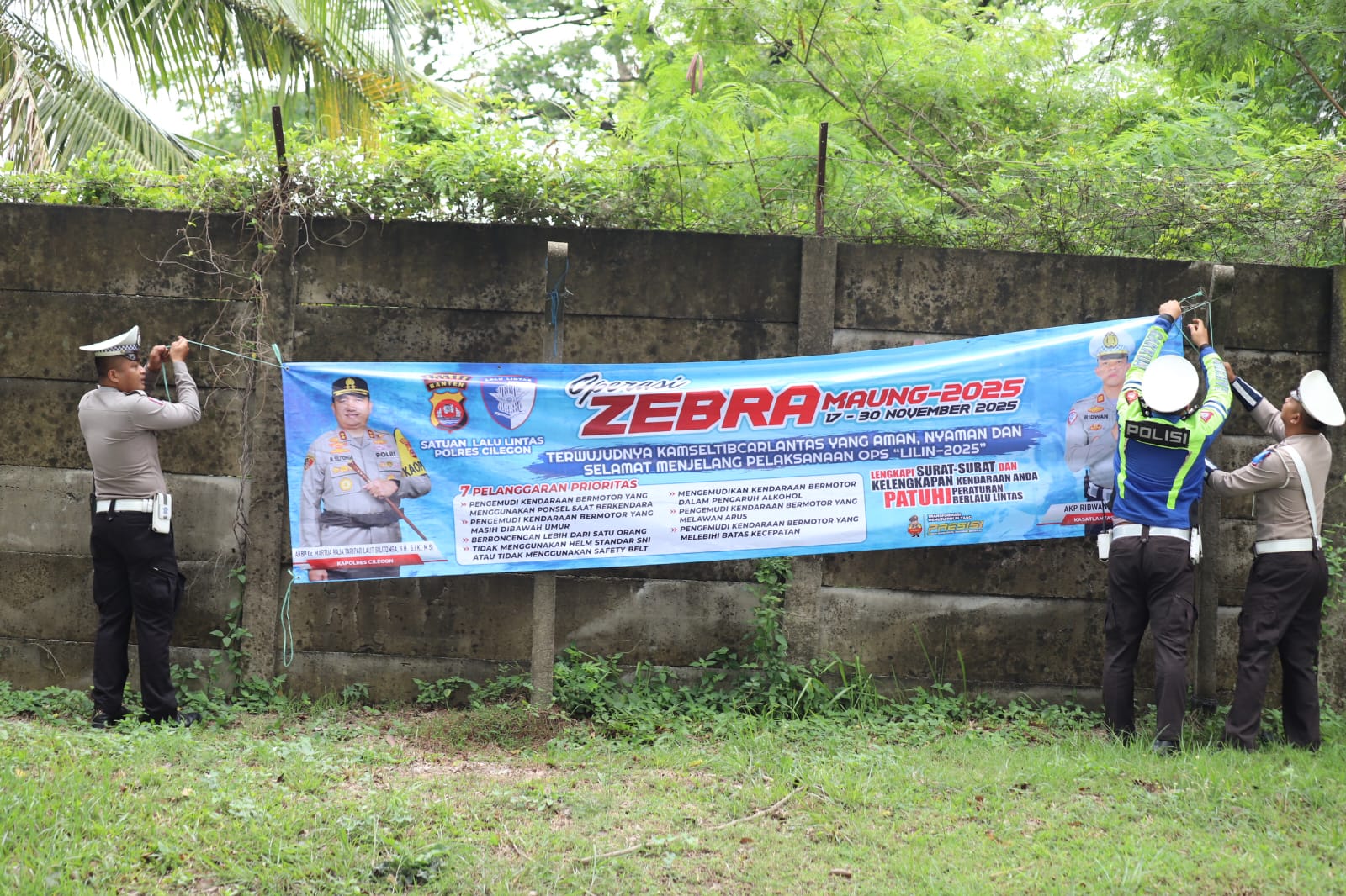 Sosialisasi Berlanjut, Polres Cilegon Pasang Spanduk dan Bagikan Leaflet di Hari Ketiga Ops Zebra