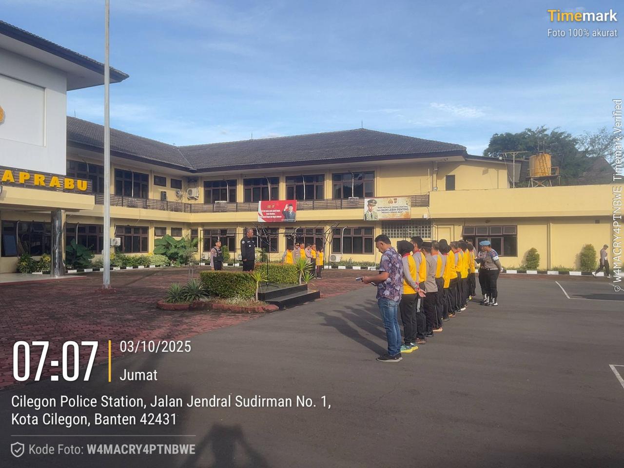 Pawas Beserta Piket Provos Laksanakan Pengecekan Terhadap Personel yang Melaksanakan apel pagi siaga satu di polres Cilegon.