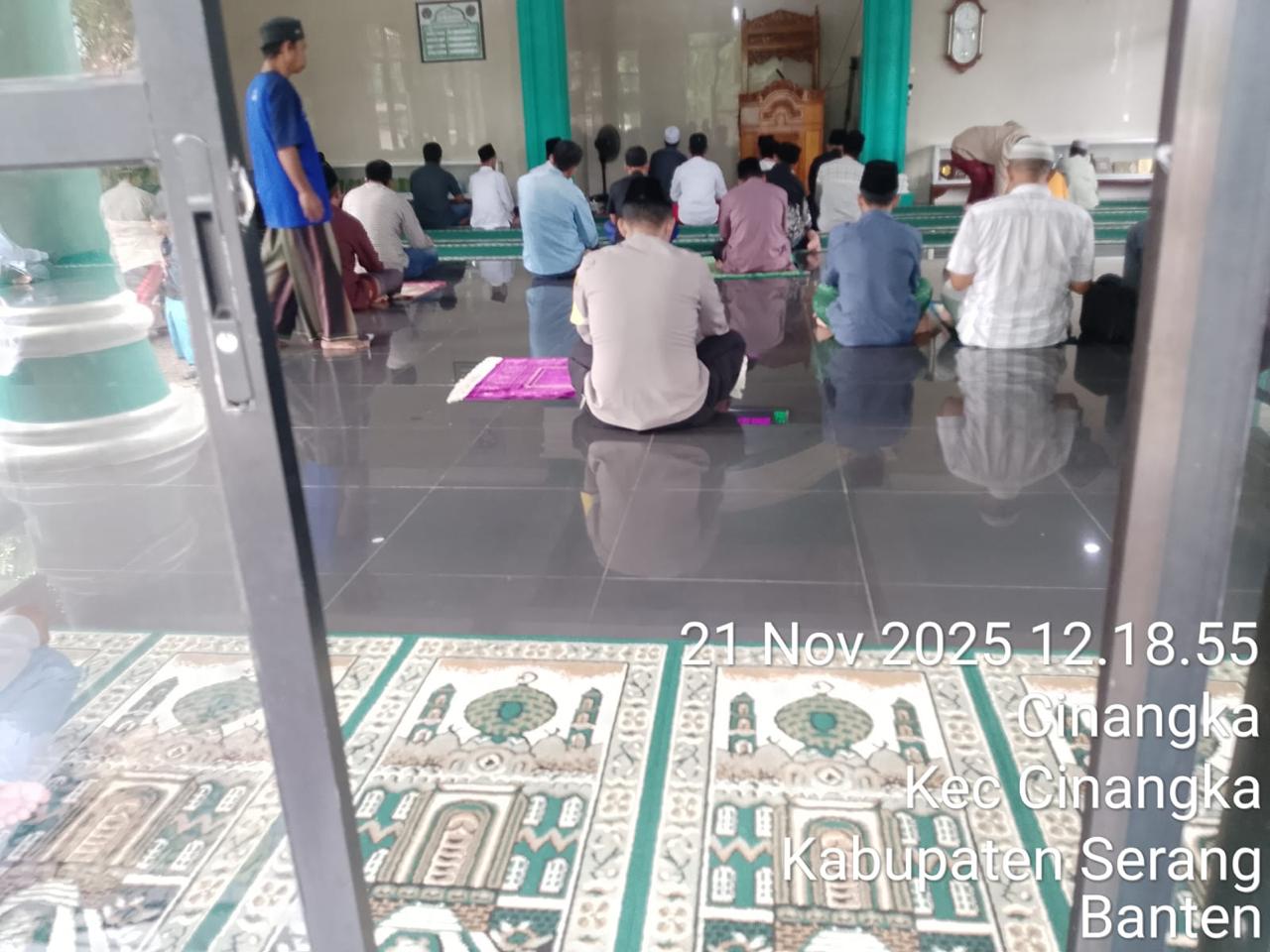 *POLRES CILEGON* - Kapolsek Cinangka Polres Cilegon Polda Banten dan Jajaran melaksanakan giat Juma't keliling dalam rangka silaturahmi menjalin kemitaraan dan menjaga Harkamtibmas di Desa Binaannya sebagai bentuk mendukung Program Quick Wins Presisi Polri, Jumat (21/11/2025).