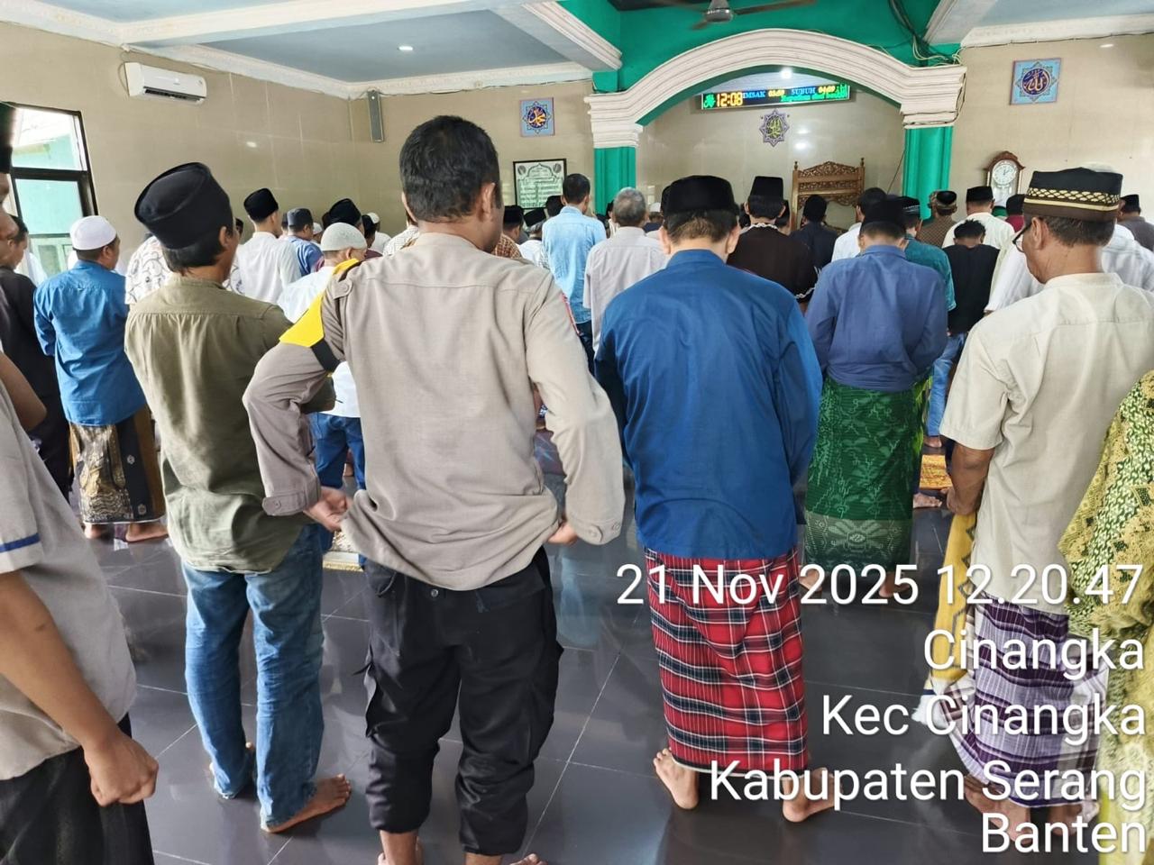 *POLRES CILEGON* - Kapolsek Cinangka Polres Cilegon Polda Banten dan Jajaran melaksanakan giat Juma't keliling dalam rangka silaturahmi menjalin kemitaraan dan menjaga Harkamtibmas di Desa Binaannya sebagai bentuk mendukung Program Quick Wins Presisi Polri, Jumat (21/11/2025).