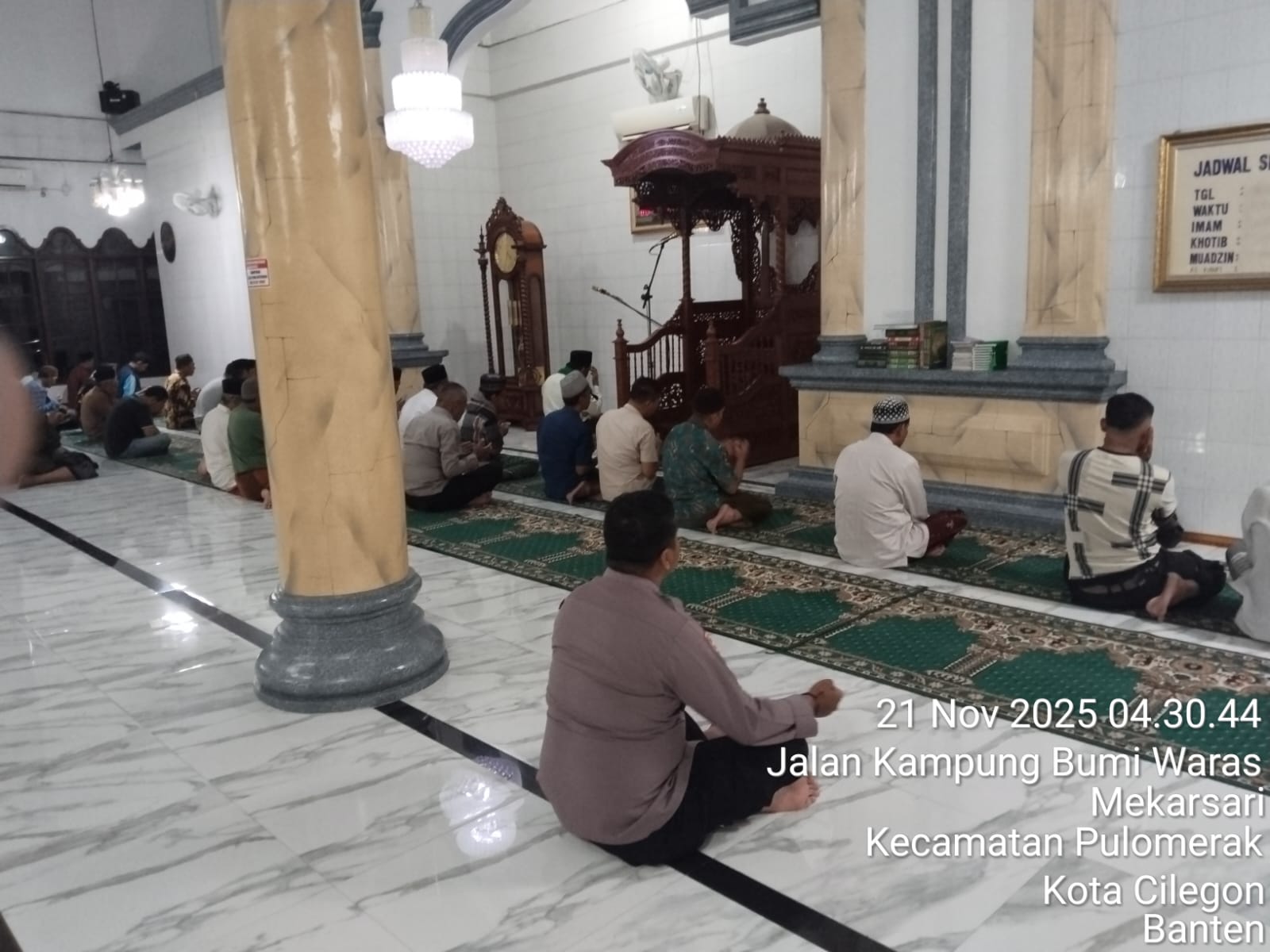 Cilegon – Personil Kskp Merak Polres Cilegon Polda Banten menggelar kegiatan Pembinaan Rohani dengan shalat subuh keliling di Masjid Yang ada Di Daerah hukum Polsek Kp Merak Polres Cilegon Polda Banten, Jumat (21/11/2025).