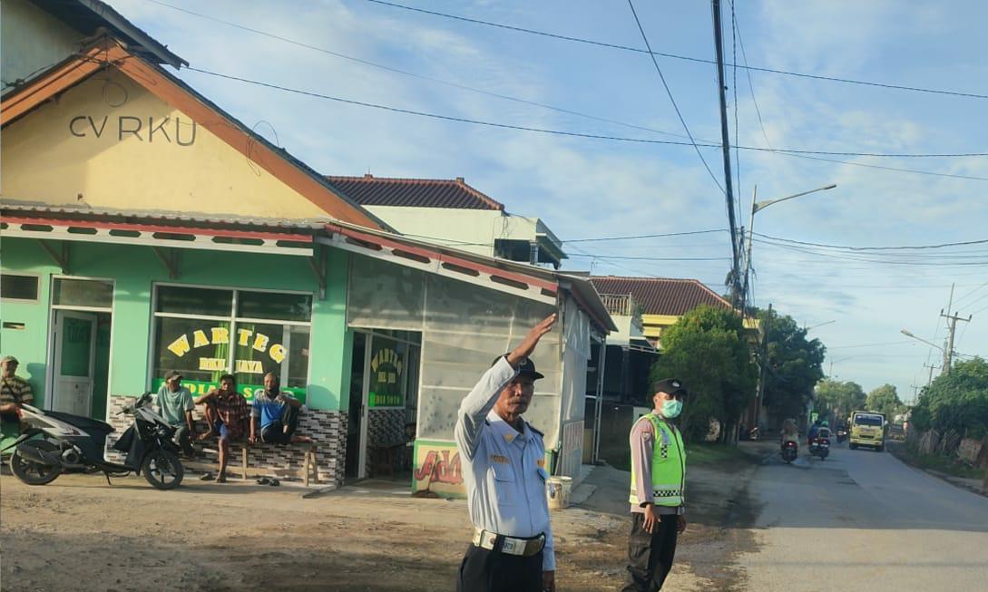 Personel Polsek Bojonegara dan Dishub Laksanakan Gatur Lalin Di Jalan Raya PT RKU Bojonegara