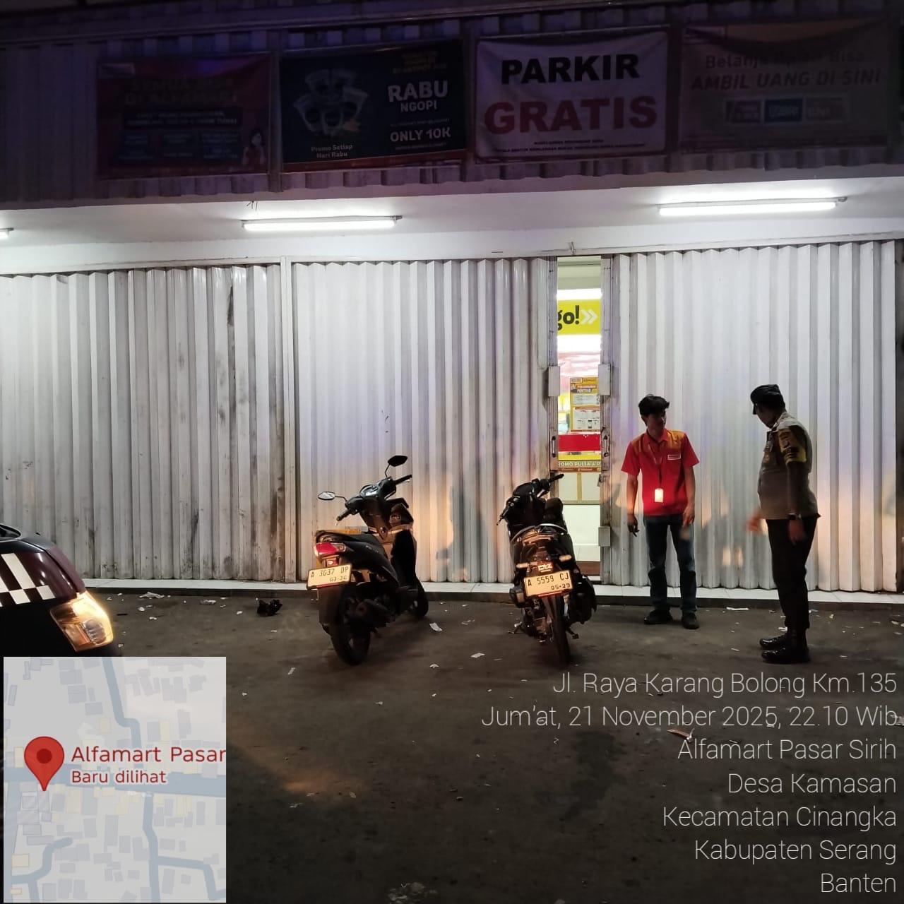 *Polres Cilegon* – Dalam Rangka Pencegahan Kejahatan Jalanan dan Memelihara situasi keamanan dan menjaga serta memberikan rasa aman dan nyaman di masyarakat,Salah satu upaya untuk mewujudkan hal tersebut sebagaimana yang dilakukan oleh Personil Polsek Cinangka Polres Cilegon Polda Banten melaksanakan giat patroli blue light malam hari hingga menjelang pagi, Sabtu (22/11/2025).