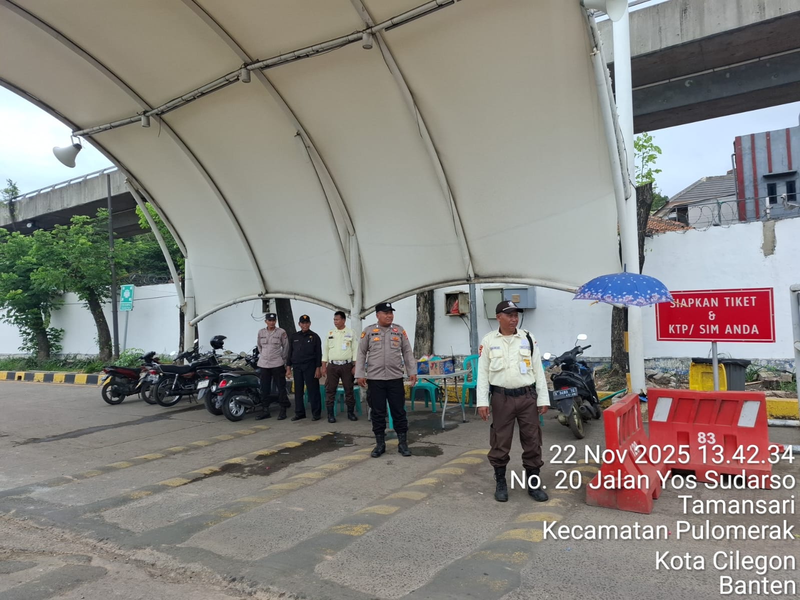 Cilegon - Personel Polsek Kskp Merak Polres Cilegon Polda Banten melaksanakan sambang dan patroli kawasan pelabuhan merak dalam rangka menjaga Harkamtibmas di Kawasan Pelabuhan Merak, Sabtu (22/11/2025).