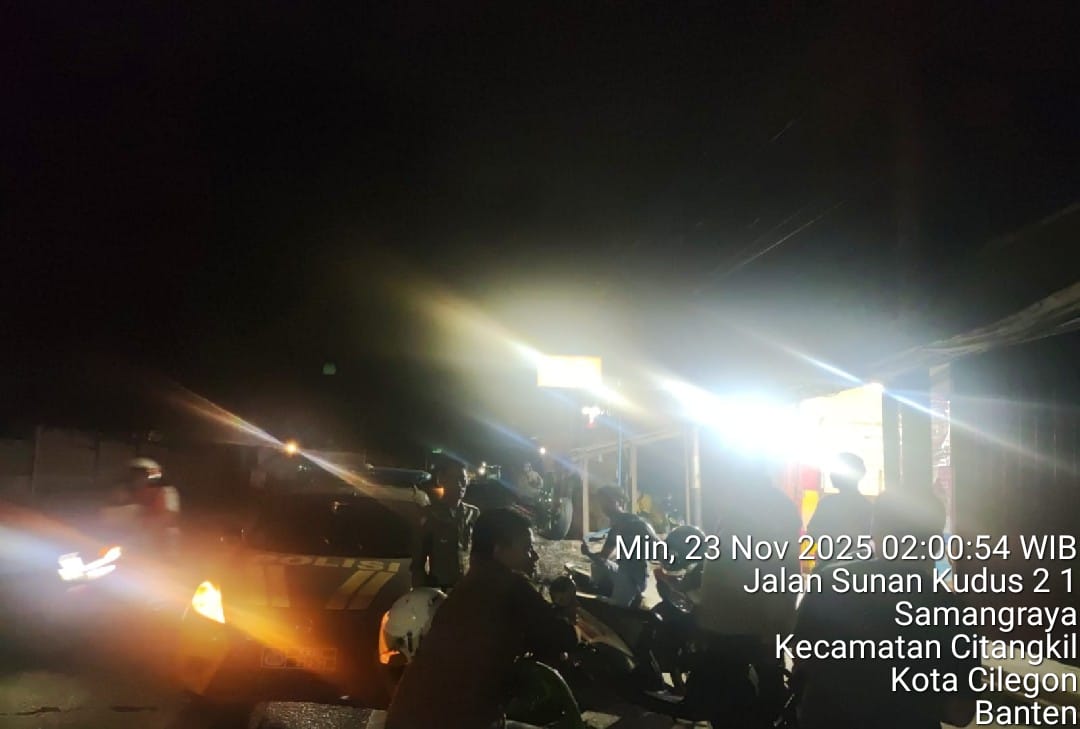 Cilegon - Personil Polsek Ciwandan Polres Cilegon Polda Banten Selalu Melaksanaan Kegiatan KRYD (Kegiatan Rutin Yang Ditingkatkan) Patroli Rutin malam hari di daerah hukum Polsek Ciwandan Guna Persempit Ruang Pelaku Tindak Kejahatan, Sabtu (22/11/2025).