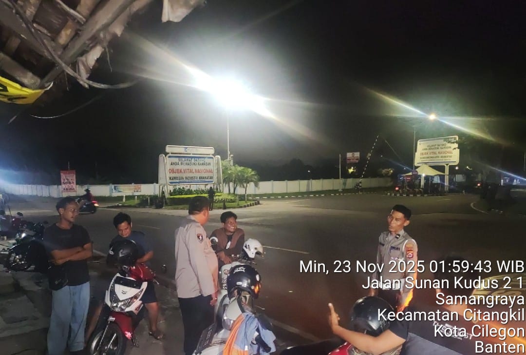 Cilegon - Personil Polsek Ciwandan Polres Cilegon Polda Banten Selalu Melaksanaan Kegiatan KRYD (Kegiatan Rutin Yang Ditingkatkan) Patroli Rutin malam hari di daerah hukum Polsek Ciwandan Guna Persempit Ruang Pelaku Tindak Kejahatan, Sabtu (22/11/2025).
