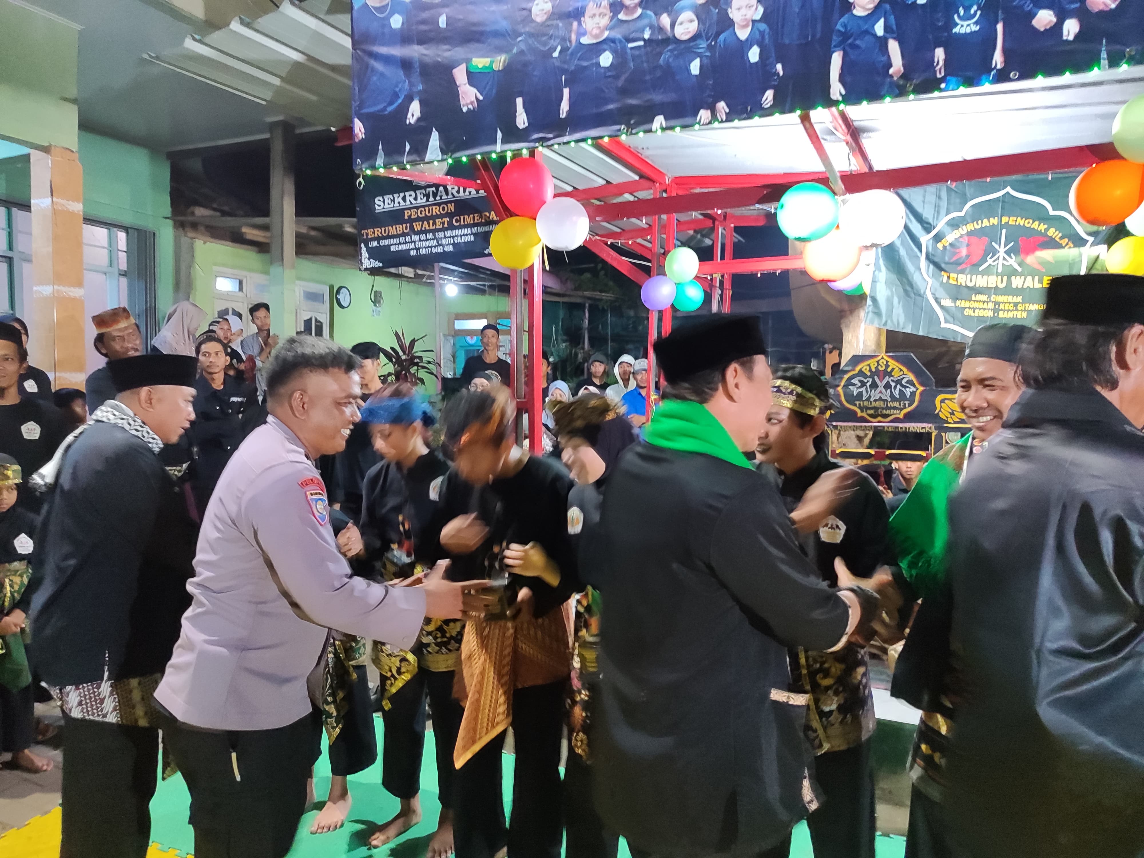 Cilegon - Bhabinkamtibmas Kelurahan Kebonsari, AIPDA M. Enday, menghadiri acara Peguron Pencak Silat Terumbu Walet Cimerak Ke-5 Tahun di Link. Cimerak Rt. 03/03 Kel. Kebonsari Kec. Citangkil, Kota Cilegon, Minggu (22/11/2025)