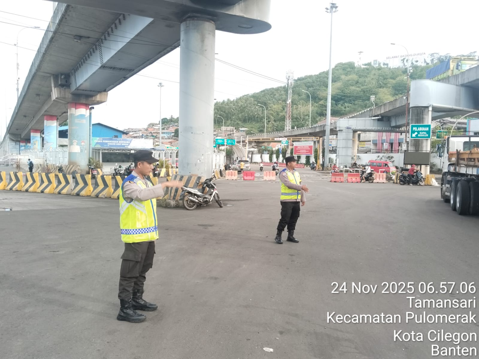 Cilegon - Dalam rangka peningkatan pelayanan prima kepada masyarakat, Kskp Merak Polres Cilegon Polda Banten melaksanakan pengaturan antrian R4 yang akan masuk ke Kapal Ferry di Pelabuhan Merak, Senin (24/11/2025).