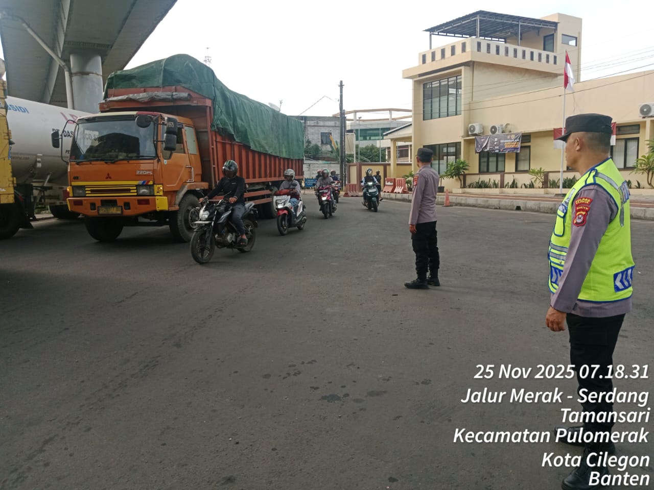 Cilegon - Dalam rangka peningkatan pelayanan prima kepada masyarakat, Kskp Merak Polres Cilegon Polda Banten melaksanakan pengaturan antrian R4 yang akan masuk ke Kapal Ferry di Pelabuhan Merak, Selasa (25/11/2025).