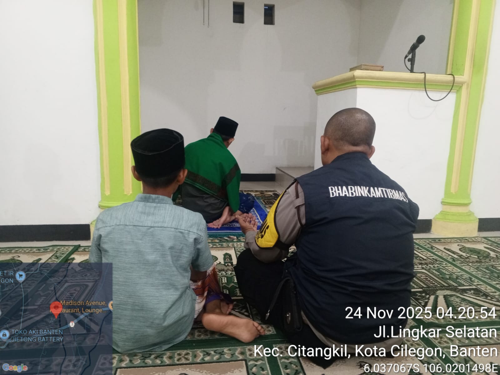 Cilegon - Personel satreskrim Polres Cilegon Polda Banten,  bersama dengan bhabinkamtibmas Polres Cilegon melaksanakan kegiatan subuh keliling bersama warga di Masjid Al-Anwar. Selasa (25-11-2025)