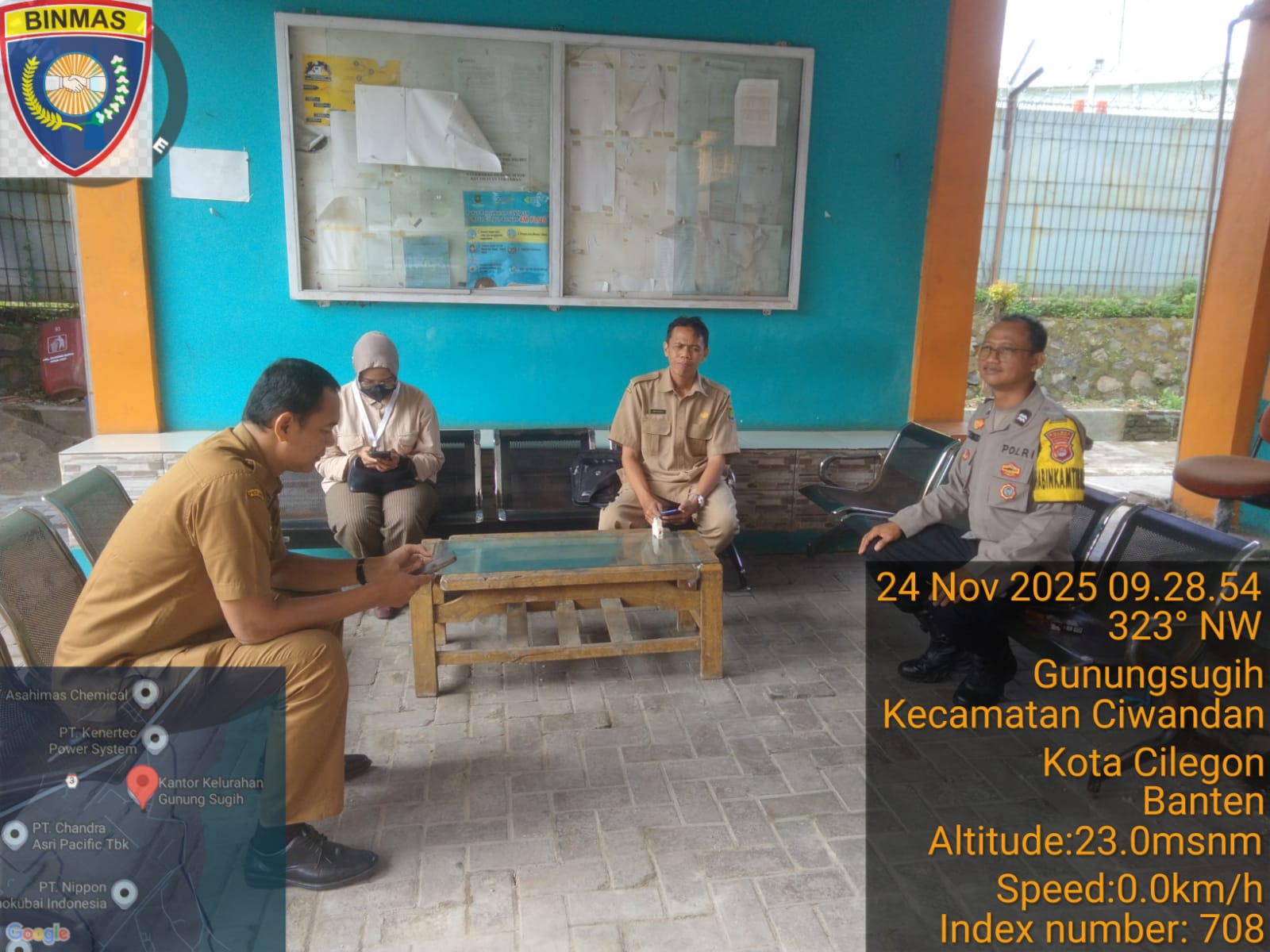 Cilegon - Dalam upaya memberikan rasa aman kepada masyarakat Bhabinkamtibmas Polsek Ciwandan Polres Cilegon Polda Banten melakukan upaya dalam mencegah gangguan kamtibmas,seperti melaksanakan giat sambang di kantor-kantor kelurahan  bertemu langsung dengan perangkat kelurahan, Selasa (25/11/2025).