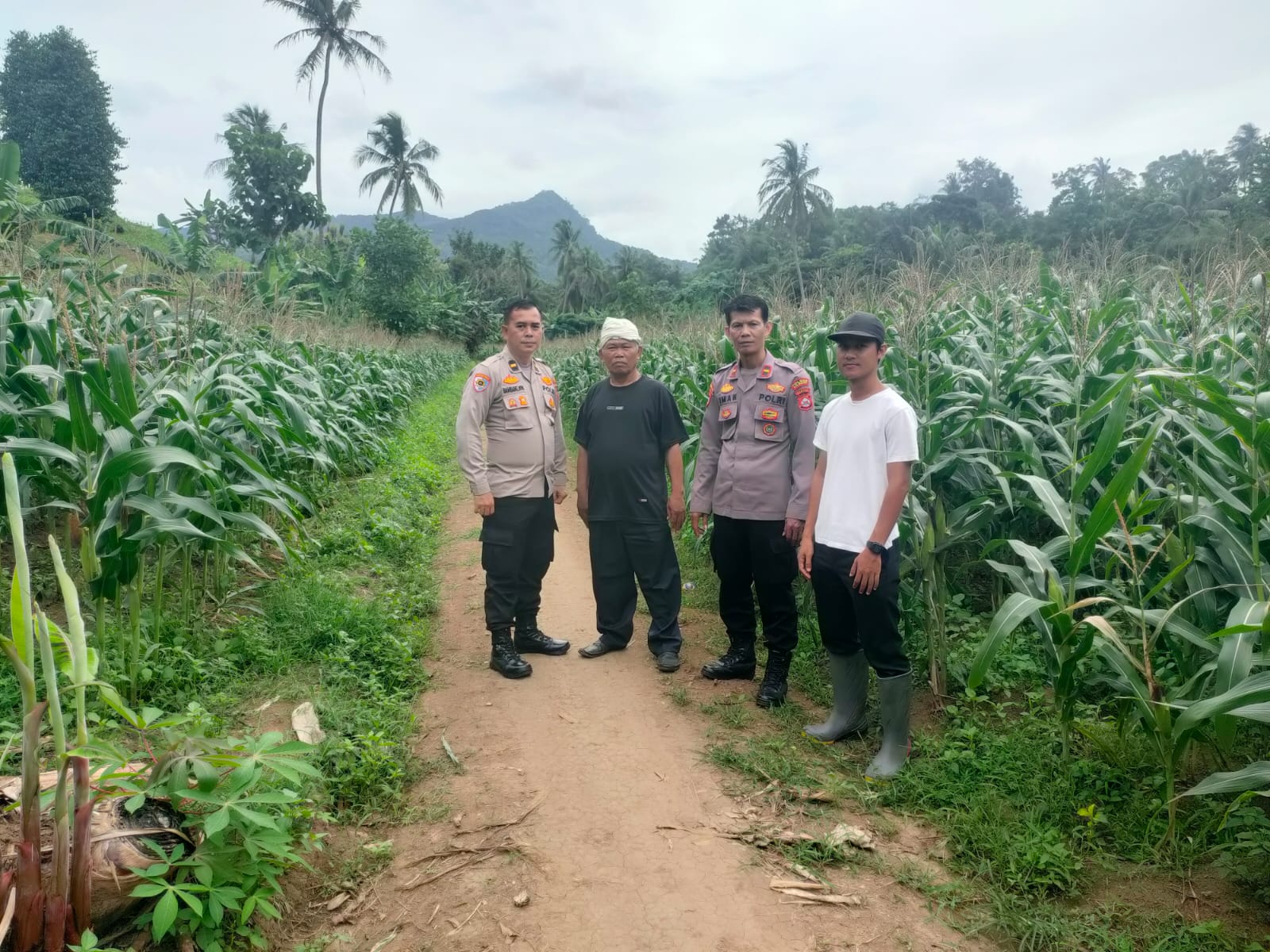 Polsek Anyar Bersama Dengan Ketua Poktan Cek Tanaman Jagung