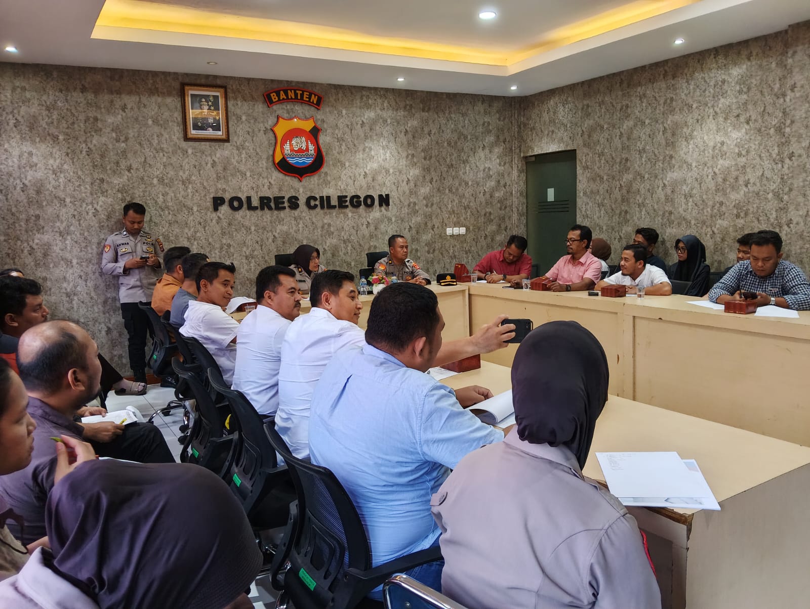 Bagren Polres Cilegon melaksanakan Analisis dan Evaluasi (Anev) E-Survey Pelayanan Publik yang bertujuan untuk meningkatkan kualitas pelayanan publik di Polres Cilegon. Kegiatan ini dihadiri oleh pejabat utama dan staf Polres Cilegon yang terkait dengan pelayanan publik.