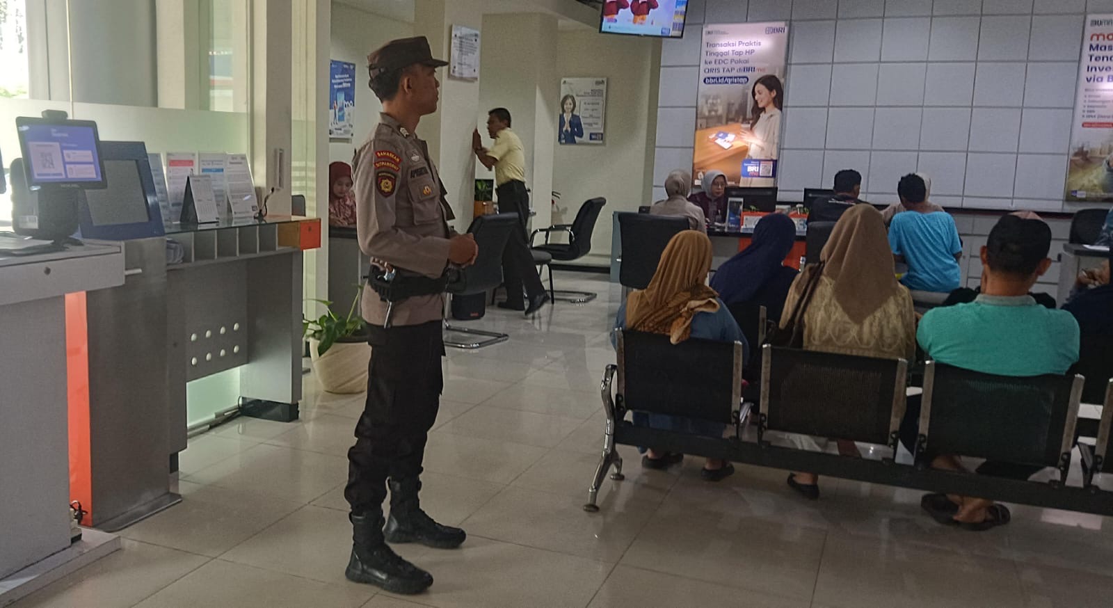 Pers satpamobvit melaksanakan pengamanan bank BRI