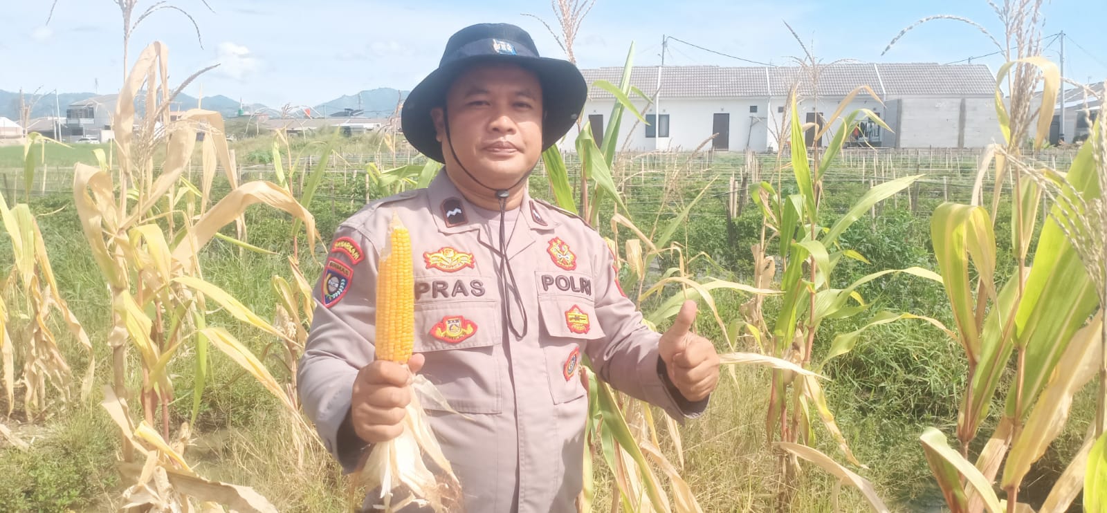 Cilegon - Bhabinkamtibmas Polsek Cibeber bersama kelompok Tani melaksanakan panen raya tanaman jagung sebagai bagian dari Program Ketahanan Pangan Asta Cita Presiden RI.