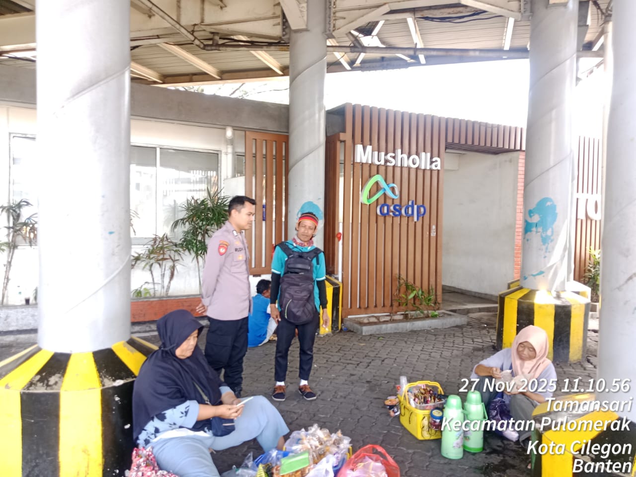 Cilegon - Personel Polsek Kskp Merak Polres Cilegon Polda Banten melaksanakan sambang dan patroli kawasan pelabuhan merak dalam rangka menjaga Harkamtibmas di Kawasan Pelabuhan Merak, Kamis (27/11/2025).