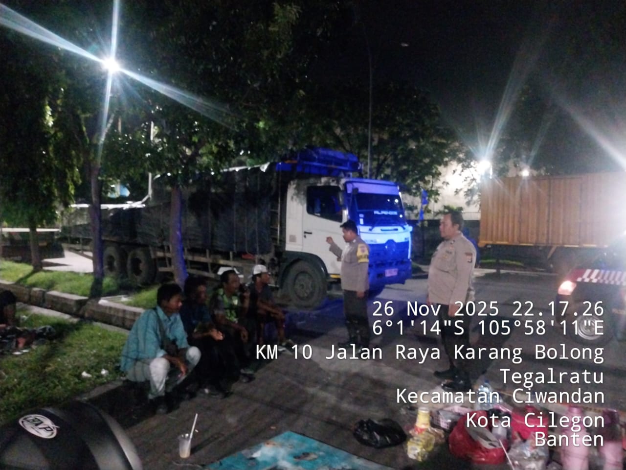 Cilegon - Personil Polsek Ciwandan Polres Cilegon Polda Banten Dalam Pelaksanaan Kegiatan Patroli dengan menyalakan lampu rotator berwarna biru di Daerah Hukum Polsek Ciwandan Polres Cilegon Polda Banten dari malam hingga dini hari, dalam rangka menciptakan situasi aman dan kondusif, Kamis (27/11/2025).
