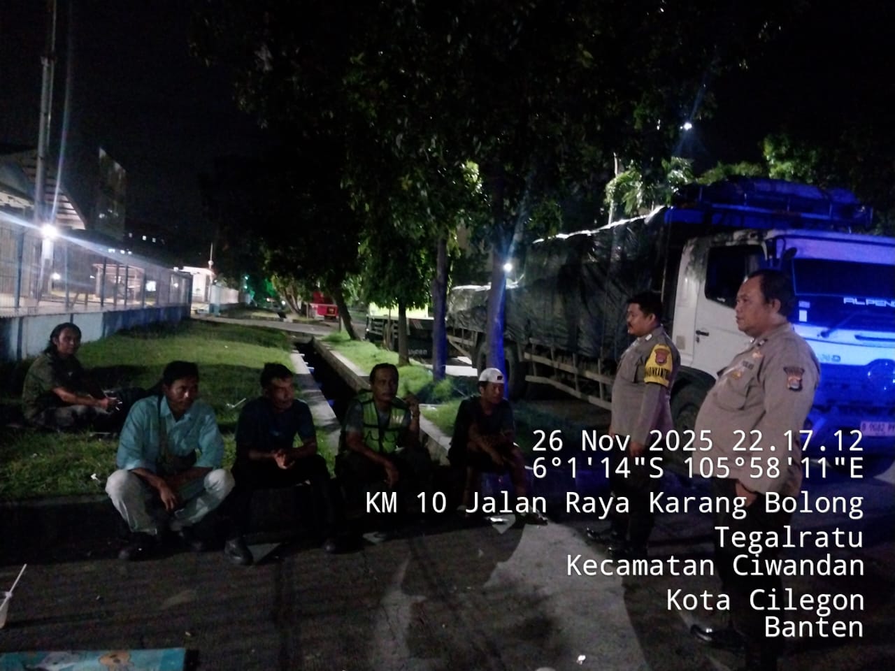 Cilegon - Personil Polsek Ciwandan Polres Cilegon Polda Banten Dalam Pelaksanaan Kegiatan Patroli dengan menyalakan lampu rotator berwarna biru di Daerah Hukum Polsek Ciwandan Polres Cilegon Polda Banten dari malam hingga dini hari, dalam rangka menciptakan situasi aman dan kondusif, Kamis (27/11/2025).