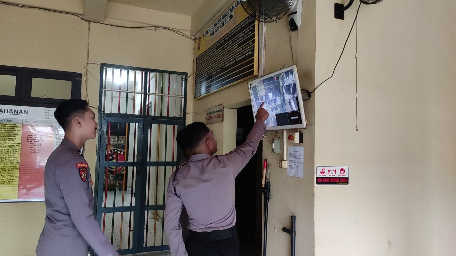 Personil Sat Tahti Cek Tahanan melalui CCTV yang ada di Rutan Polres Cilegon.