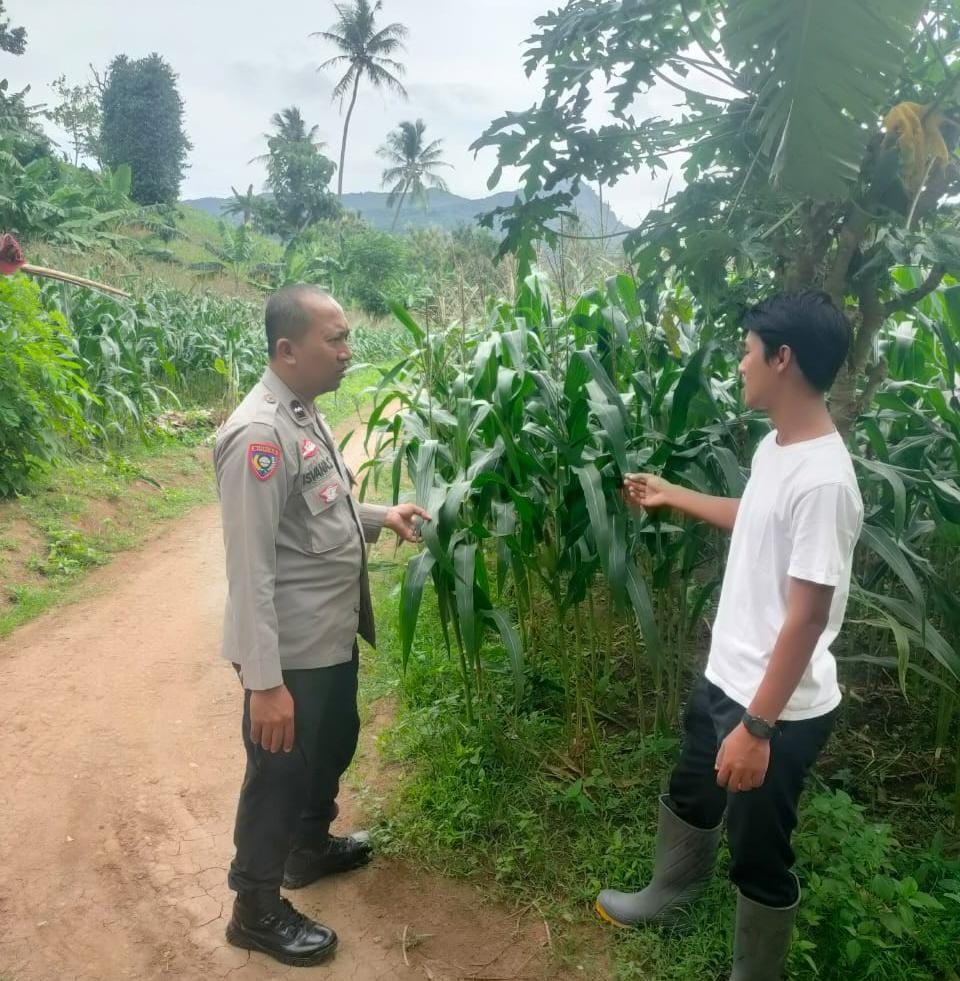Polsek Anyar dengan Petani Cek Tanaman Jagung
