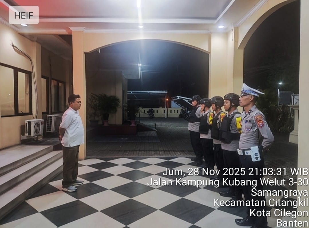 Cilegon - Personil Polsek Ciwandan Polres Cilegon Polda Banten menggelar apel malam Persiapan Patroli yang dipimpin Oleh Pawas Polsek Ciwandan Yang Bertugas Pada Hari Itu, Sabtu (29/11/2025)