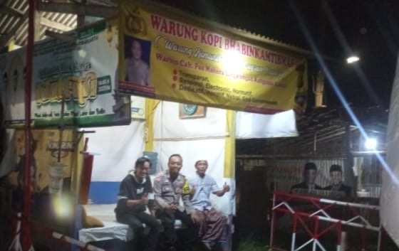 BHABINKAMTIBMAS BERBINCANG DENGAN PETUGAS SIS KAMLING/RONDA DI JL. KALIGANDU, TEGASIN HIMAUMAN KEAMANAN LINGKUNGAN