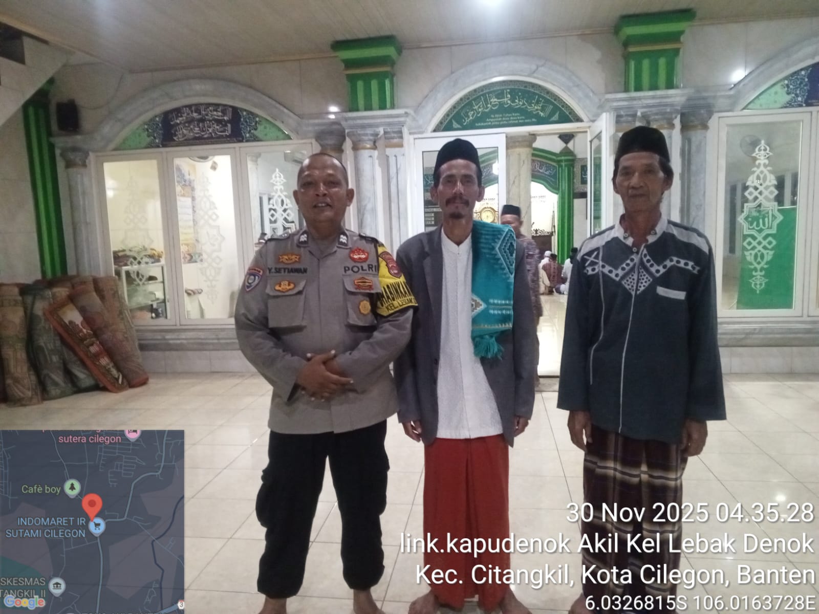 Cilegon - Personel satreskrim Polres Cilegon Polda Banten,  bersama dengan bhabinkamtibmas Polres Cilegon melaksanakan kegiatan subuh keliling bersama warga di Masjid Al-Anwar. Minggu (30-11-2025)