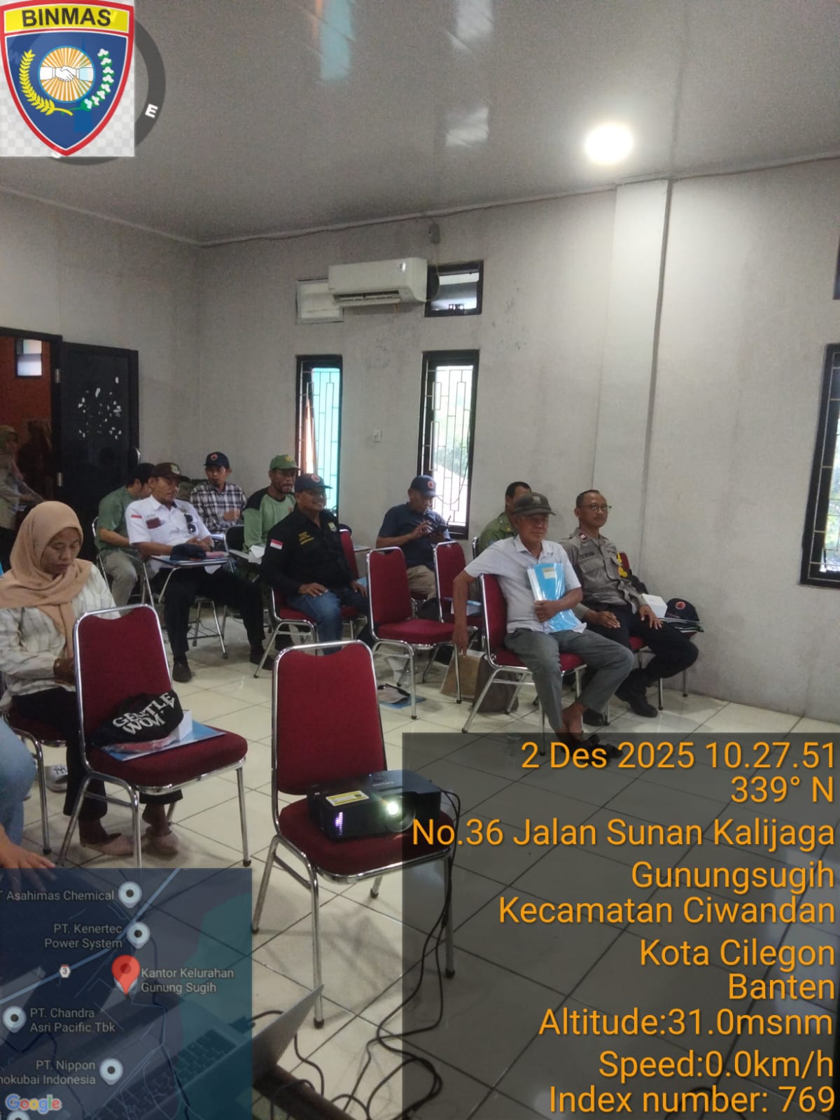 Cilegon - Bhabinkamtibmas Kelurahan Gunung Sugih Polsek Ciwandan Polres Cikegon Polda Banten Menghadiri Dan Mengikuti kegiatan Pencegahan Penanggulangan Bencana Tingkat Kelurahan yang Bertempat di Aula Kelurahan Gunung Sugih Kecamatan Ciwandan Kota Cilegon, Selasa (02/12/2025).